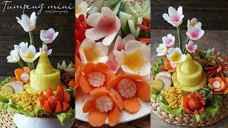 Cara membuat macam-macam hiasan tumpeng ada di dalam video ini. Mulai dari bunga wortel, bunga cabe, bunga timun, mawar tomat, mawar wortel, bunga ...