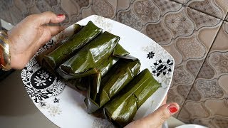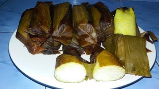 Bahan: 1 tin susu (beras pulut), 1/2 tin kacang (black eye bean), 1 cup kelapa parut) garam secukup rasa , beberapa helai daun pisang (direbus hingga lembut) ...