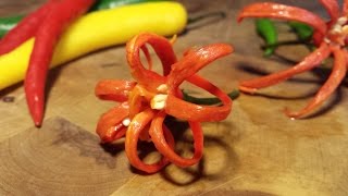 We show you how to make a chili flower garnish sometimes called a Fire Bloom or chilli florette. With fresh chillies a very sharp knife or scissors, patience and a ...