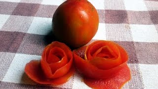 cara membuat hiasan berbentuk bunga mawar dari tomat.