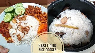 Resep nasi uduk rice cooker 1 kg beras Sereh Daun salam Daun jeruk Daun pandan Lengkuas Jahe 2 saset santan 3 sdt garam 1 sdt kaldu bubuk.