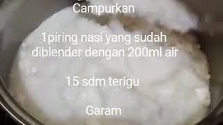 Bahan bahannya : 1 mangkok nasi (kerleb 300gram) 500 gram tepung tapioka 1 1/2 sendok makan garam 3 gram kaldu bubuk ( saya pakai kaldu alami jamur ...