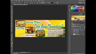 contoh cara desain mudah membuat spanduk / banner untuk jualan nasi goreng. di Aplikasi Photoshop.